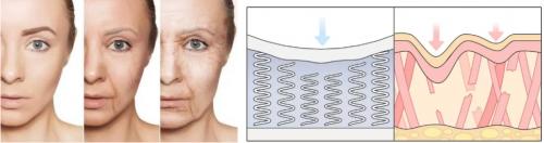 1.真皮層膠原流失,膠原纖維開始疏松甚至斷裂,表現在臉上為皺紋松弛。