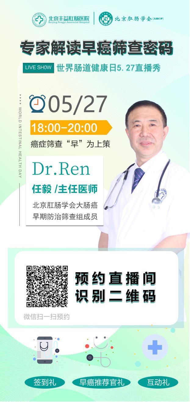 2022年5月29日是第18個世界腸道健康日,在今年的世界腸道健康日,作為直腸癌流行病普查培訓基地、北京肛腸學會會員單位的北京豐益肛腸醫院、聯合其他四省市包括保定、包頭、沈陽、大同市的四家肛腸醫院聯合舉辦“5·29世界腸道健康日:專家解讀早癌篩查密碼”直播活動。特別邀請北京肛腸學會大腸癌早期防治篩查組成員任毅主任做客直播間,旨在提醒人們注意身體發出的警示,關注腸胃健康。