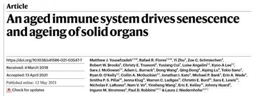2021年5月,美國明尼蘇達大學的研究人員在國際頂尖學術期刊 Nature 上發布一項重磅成果:免疫系統的衰老會導致實體器官衰老。研究表明,衰老的免疫細胞是衰老細胞中最危險的一種細胞類型,會加速實體器官衰老,從而促進全身衰老。
