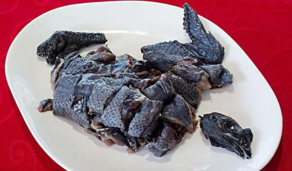 烏雞的肌肉、內臟顏色均呈黑色,但胸肌和腿部肉色較淺。