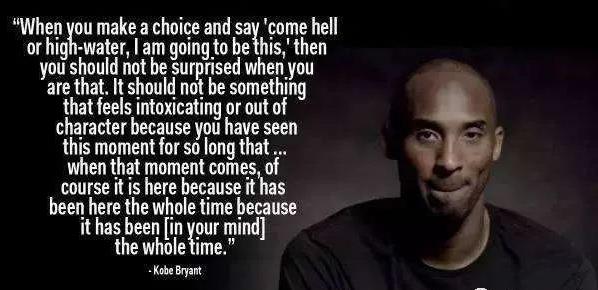 這句話堪稱科比最經典的語錄,其勵志作用已經超越了體育界。有些人或許根本不知道科比是誰,但卻對這句話耳熟能詳。