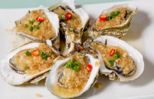 3、芝士牡蠣。原材:牡蠣、芝士、披薩草各適量。做法把牡蠣洗干凈,然后鍋里燒水把牡蠣放進去煮開撈出后把牡蠣殼去掉,取出牡蠣肉放在烤盤里,然后在牡蠣肉的上面放上一些芝士片,最后再均勻的撒上披薩草直接把烤盤放進烤箱,烤箱最好先預熱好,烤箱溫度開到180-190度的溫度然后烤幾分鐘就可以了,烤熟以后可以聞到非常香的味道。