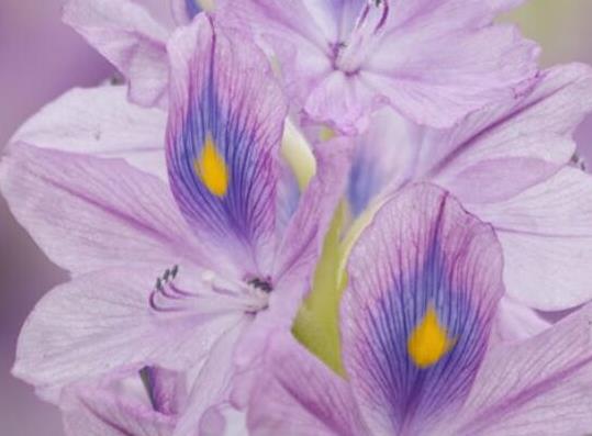 水葫蘆正式名:鳳眼藍,也叫水浮蓮。水葫蘆莖葉懸垂于水上,蘗枝匍匐于水面。花為多棱喇叭狀,花色艷麗美觀。葉色翠綠偏深。葉全緣,光滑有質感。須根發達,分蘗繁殖快,管理粗放,是美化環境、凈化水質的良好植物。在生長適宜區,常由于過度繁殖,搶占水面,影響航運,窒息魚類,危害健康;銷毀難,難以毀根。是一種具有雙面性的生物,不宜大面積種植。