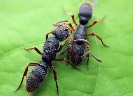 澳大利亞的牛蟻是世界上最大的螞蟻之一。其中短結(jié)牛蟻的體長可達37毫米。牛蟻的性情很兇暴。它們擁有鋒利的鋸齒狀顎部和堅硬的蜇刺,敢于對抗任何擋路的敵人。不過,它們的武器主要還是用來對付獵物。