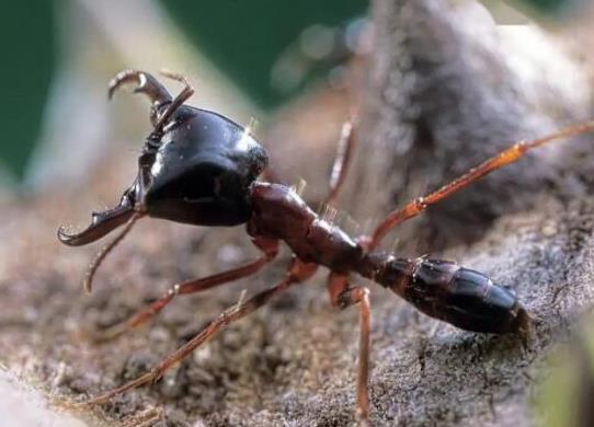 牛頭犬蟻是一種體長在15至40毫米左右,主要分布在澳洲地區(qū)的螞蟻,這些有著鋒利的螯刺和鋸齒狀鄂部的昆蟲除了有驚人的攻擊速度,還有極強的彈跳能力,最高可跳至胡峰這樣的飛行性昆蟲,將蟄刺刺入其中吸取營養(yǎng),這種螞蟻還有蜇傷人的吉尼斯世界紀(jì)錄。