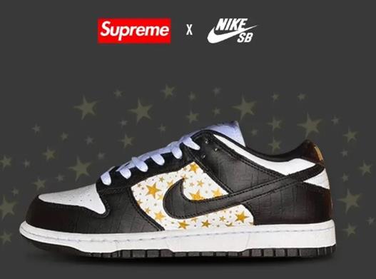 Supreme是美國知名的潮牌,Supreme x Dunk Low是supreme和耐克在2021年發售的合作款球鞋,之前其實也出來黑色、綠色合作款,但沒有這款藍色在市場的反響高。主要配色以藍白皮革為主,再點綴上金色的星星,雖然市場價格高達7000,但也受到了不少球鞋玩家的追捧。