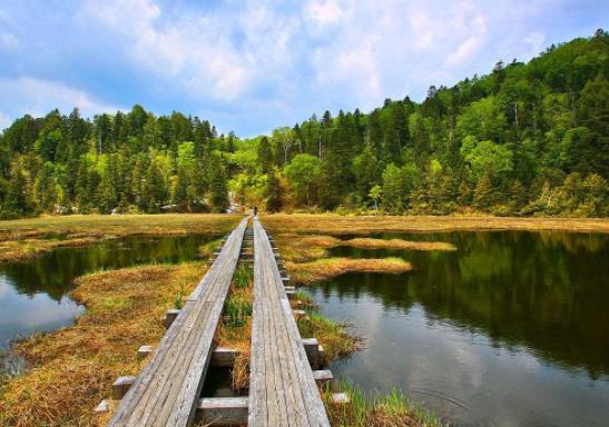 尾瀨國立公園是一座橫跨日本福島縣、栃木縣、群馬縣、新潟縣的國立公園,公園以日本規模最大的山岳濕原地帶—尾瀨以及會津駒岳、田代山、帝釋山等周邊區域為觀景點,肩負著保護自然生態環境和觀光游覽的雙重使命。尾瀨是由燧岳的熔巖被只見川截住后所形成的,位于海拔1400米到1700米的地區,是日本規模最大的高層濕原地帶。在尾瀨散布的大約400多個淺池沼中,可以看到以稀有的濕地植物觀音蓮、日光黃菅(一種黃色的百合花)為代表的濕原性植物叢和泥炭層上浮形成的浮島等濕地景觀。