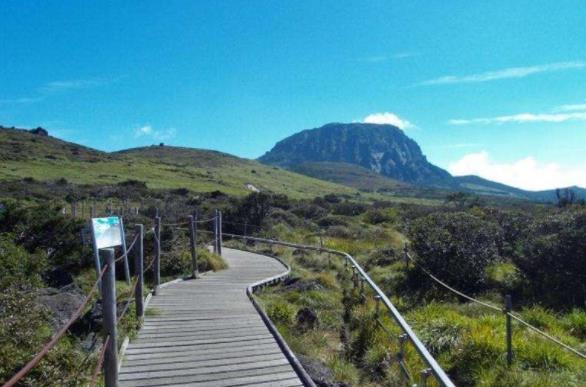 漢拿山巍然聳立于濟州島的中部,海拔1950公尺,是濟州島最具代表性的名山,又稱瀛州山,即高到可以抓住銀河的山。漢拏山分布著各種多樣化的植物,在學術研究上,具有很高的價值。1970年被指定為國立公園,周圍分布著386座寄生火山山峰(當地語為“奧陵”)。漢拏山上分布著溫帶至寒帶的植物,這種垂直的植物生態,相當受到眾人的矚目。這里也是棲息生態界,分布的地方,山上有1800多種植物和4000多種動物(昆蟲類3300多種)等。