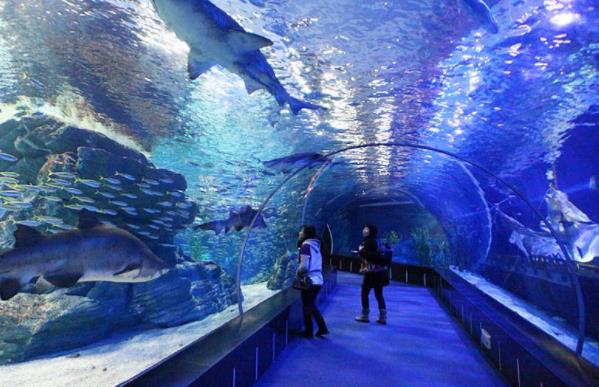 釜山水族館內有鳥類,魚類,爬蟲類,兩棲類等約35,000只動物,是韓國國內規模最大的主體水族館。面積約36,000㎡的水族館共4層,地下3層地上1層。地上是露天公園和停車場,地下1層為海洋模擬館、休息室和紀念品商店;地下2、3層則是各類的水族館。而讓釜山水族館最為自豪的是位于地下3層長達80米的海底隧道。進入隧道就如真的身在海底一般,魚兒們從兩側從頭頂游過,感覺神奇而有趣,海底隧道也因此深受游客們青睞。此外,地下1層的海洋模擬館能讓游客們在虛幻的海洋世界中盡情暢游。