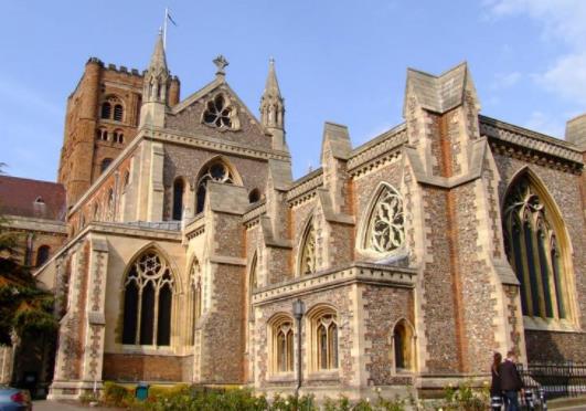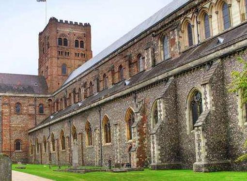 圣奧爾本斯是英格蘭赫特福德郡的一個城市,距倫敦以北約35公里。該地歷史可追溯至鐵器時代,是歷史悠久的集鎮(zhèn),如今是一座極具魅力的城市。壯觀的圣奧爾本斯座堂是當?shù)刈顬橹匾木包c之一,該教堂是英國古老教堂之一,整體呈羅曼式建筑風格,曾是一座修道院,3世紀時為紀念英國首位殉道的基督徒圣奧爾本而命名并于1877年升格為圣奧爾本斯大教堂。堂內保存完好的耶穌釘在十字架上的13世紀壁畫、羅馬磚修建的圓形諾曼教堂中殿的柱子和拱門神圣而輝煌。