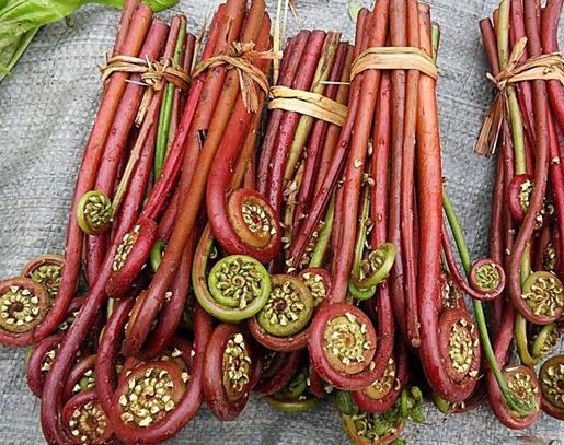 蕨菜也稱龍頭菜,是野菜中比較受歡迎的一種,有不少商家還將蕨菜做成包裝類食品售賣。當蕨菜葉呈卷曲狀時說明它比較鮮嫩,這個時候最適合采摘。吃蕨菜可以起到清熱滑腸、降氣化痰、利尿安神的作用,生活中比較常見的吃法是將其做成涼拌蕨菜、蕨菜扣肉等等。