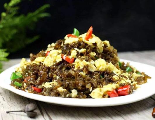地皮菜只有夏季天氣炎熱,打雷過后才會長出來。因為它因雷公發威而生,因此它也叫作“雷公菜”。地皮菜捏在手里軟軟的,感覺跟木耳有些類似,用地皮菜去炒雞蛋是極好的下酒菜,一口菜三口酒,那滋味簡直妙不可言。