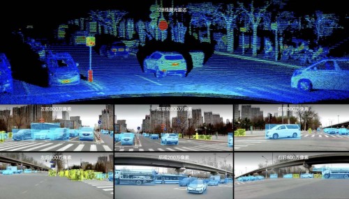 前向的車規級激光雷達配備128個激光器,全局分辨率為1200x128,點云數量達到153萬/秒,這在已經量產的車規級激光雷達中綜合性能是最強的。在暗光、強光這類攝像頭受限的場景,激光雷達可確保系統對環境感知的準確性,幫助車輛提升對靜止及異形障礙物的識別,例如:高速公路上的事故靜止車輛、施工路障等物體等等。