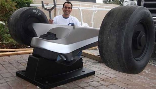 滑板雖然完工,操作起來非常困難,即使是滑板高手,也不能很好的掌控這輛滑板。喬曾今在一個營地試玩這輛滑板。他說這么大的滑板,最難的是,你不能改變它的運行軌跡,而且由于身材過于龐大,加速度也很大,一不小心速度就漲到了每小時30~35英里,喬不得不從滑板上跳下來,幸運的是,他沒有受傷。