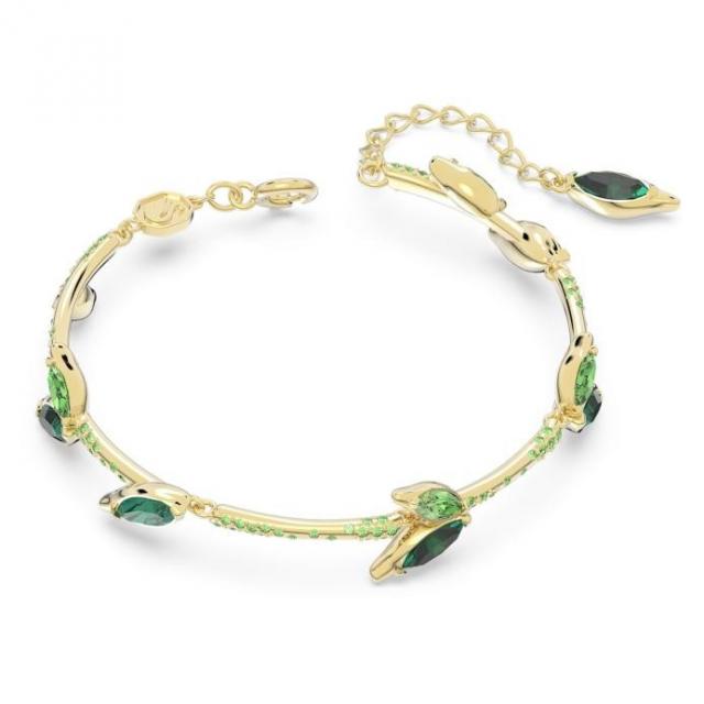 比如施華洛世奇Dellium系列手鏈,便能將沉悶的穿搭瞬間點亮!八段竹節設計,不僅層次感十足,還自帶好運連連、欣欣向榮的美好寓意。而鍍金的鏈條經過了精致的綠色仿水晶和密鑲寶石的點綴,更加奪目吸睛。稍稍挽起衣袖,將施華洛世奇手鏈露出,即可讓源自亞洲的藝術傳統,盡情展露出國潮韻味。