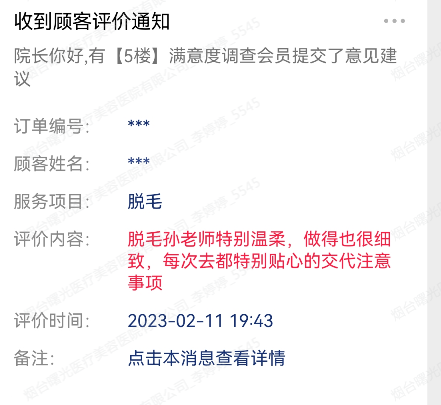 “脫毛孫老師特別溫柔,做的也很細致,每次去都特別貼心的交代注意事項”