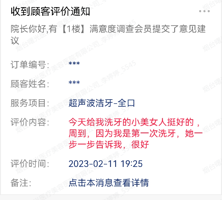 “今天給我洗牙的小美女人挺好的,周到,因為我是第一次洗牙,她一步一步告訴我,很好”